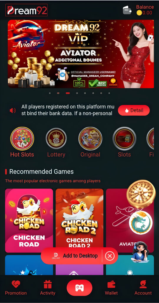 - Download and open Dream 92 Game app.